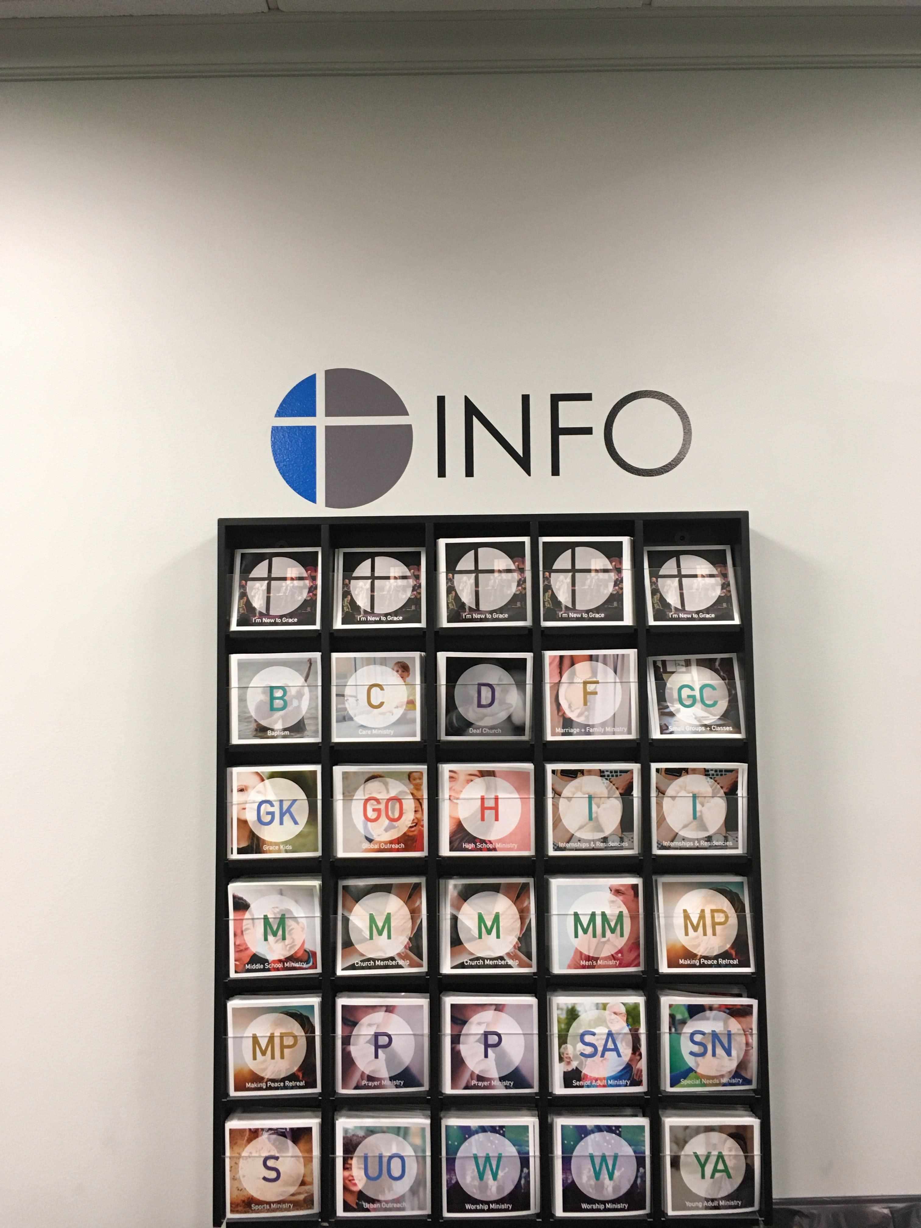 When the brochures were sorted into a clear and inviting shelf, we discovered that many guests were satisfied to browse the brochures to explore ministries, and then replace them on the shelves. They preferred to connect to the ministry later online. Knowing this encouraged the team to be less concerned with print materials, and more proactive in updating the event calendar on our website.